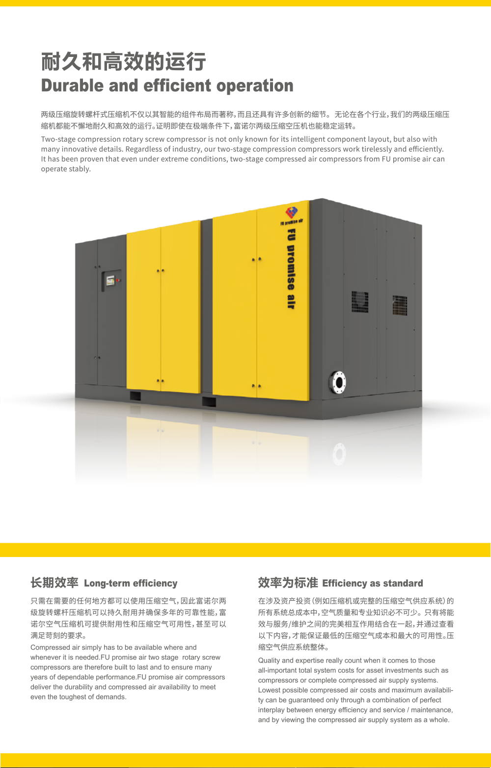 Redefining Reliability and Efficiency in Industrial Power When the energy consumption of your compressed air system accounts for 30% of your factory's total cost, and every minute of downtime costs hundreds of dollars—Fu promise air provides smarter, more resilient, and more sustainable power solutions to global industrial enterprises through technological innovation.